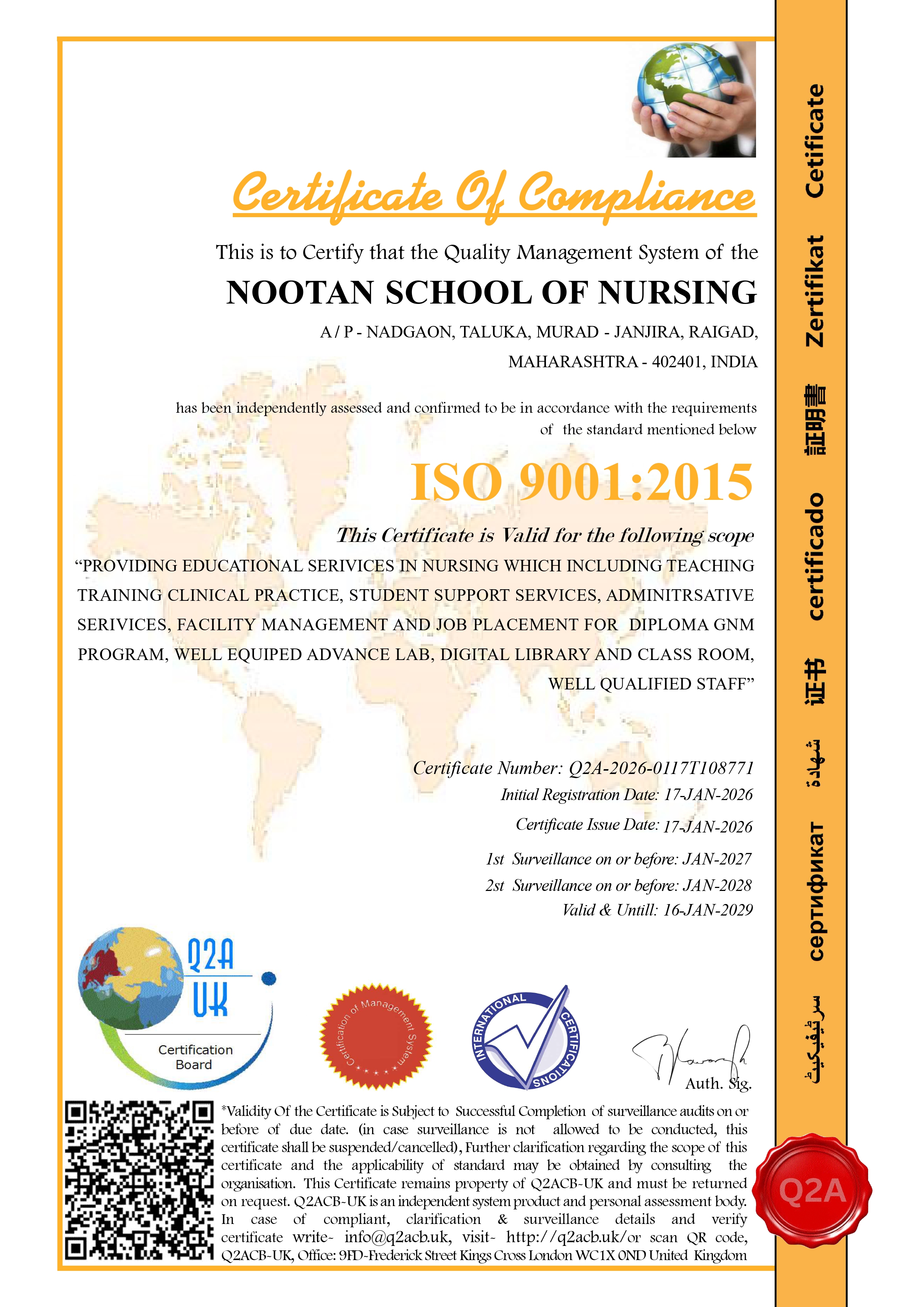 Nootan School of Nursing is a unique medical education institute, which will create quality manpower for all levels of healthcare delivery. This is the first such dedicated institution which provides Nursing, Paramedical and Administrative education, all under one roof in Kavathemahankal.